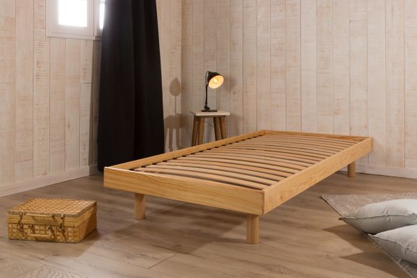 Grâce à ses pieds en retrait, ce couchage 1 ou 2 places possède un encombrement minimum. Il prendra place même dans les plus petites chambres ! Pour les lits en 120, 140 et 160 cm un pied central est rajouté pour vous garantir des nuits en toute sécurité.